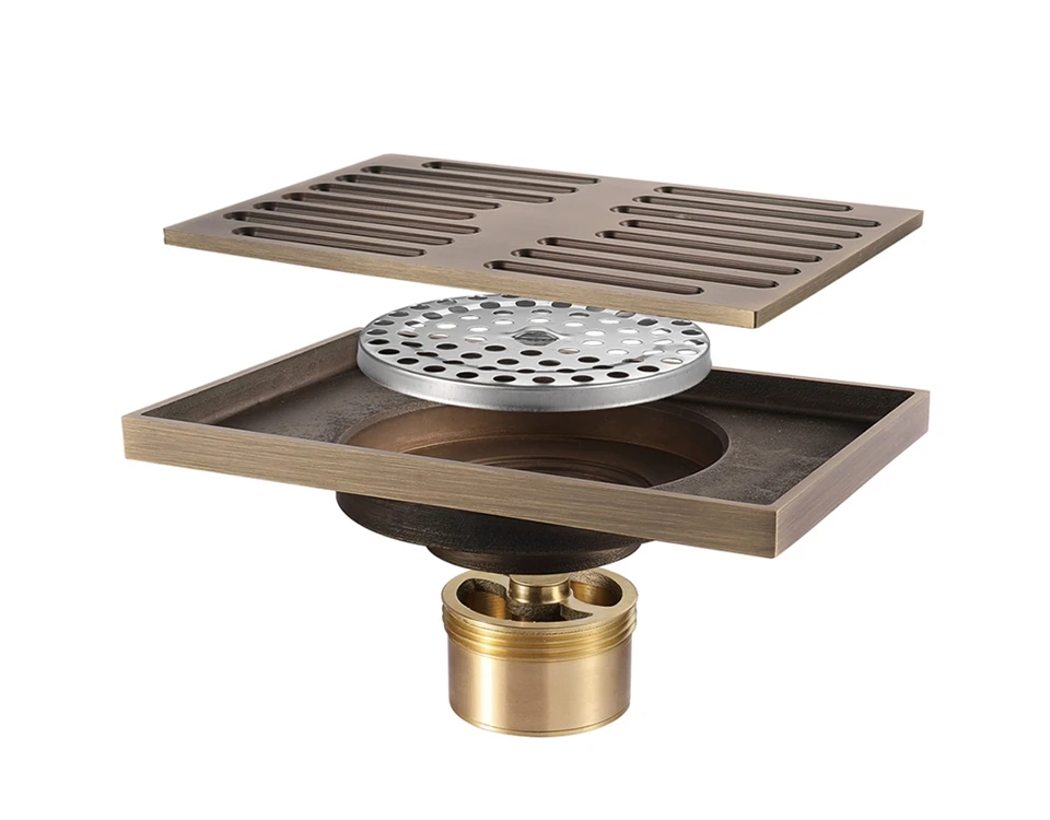 A plumbing fixture designed to remove water on the floor of a structure. This Antique brass bathroom shower drain from bathlova ensures easy drainage and prevents insects from entering the bathroom. Its intricate and appealing design will really attract your attention. Experience a new home decor combined with efficiency!
