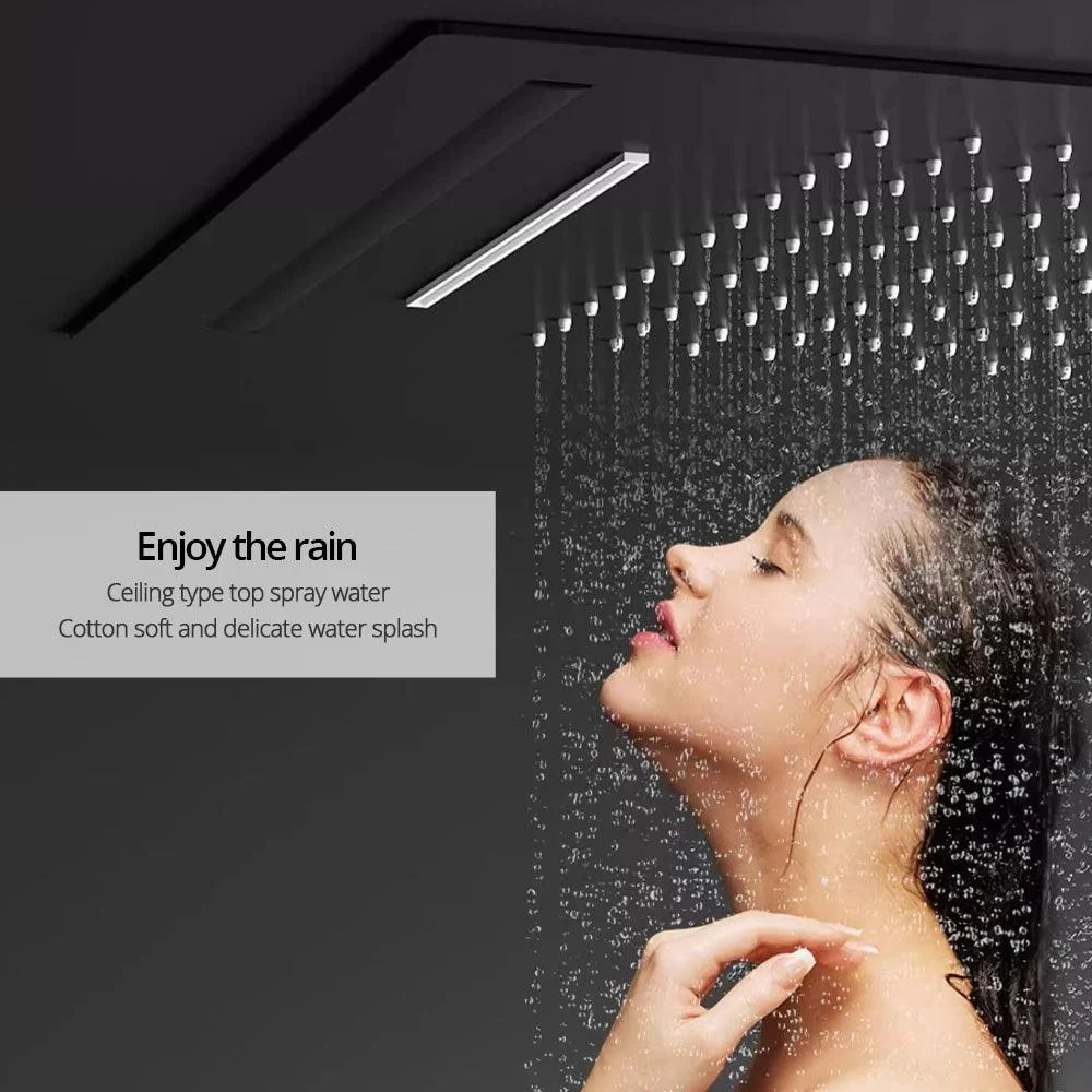 Elevate your bathroom with bathlova Ceiling Shower Head and Shelf Wall Mounted Mixer Tap Set. Crafted for luxury, the ceiling-mounted shower head delivers a soothing rainfall sensation, while the integrated shelf provides convenient storage for your shower essentials. The wall-mounted mixer tap adds a touch of elegance and practicality to your bathroom decor. Upgrade your bathroom with elegance and practicality.
