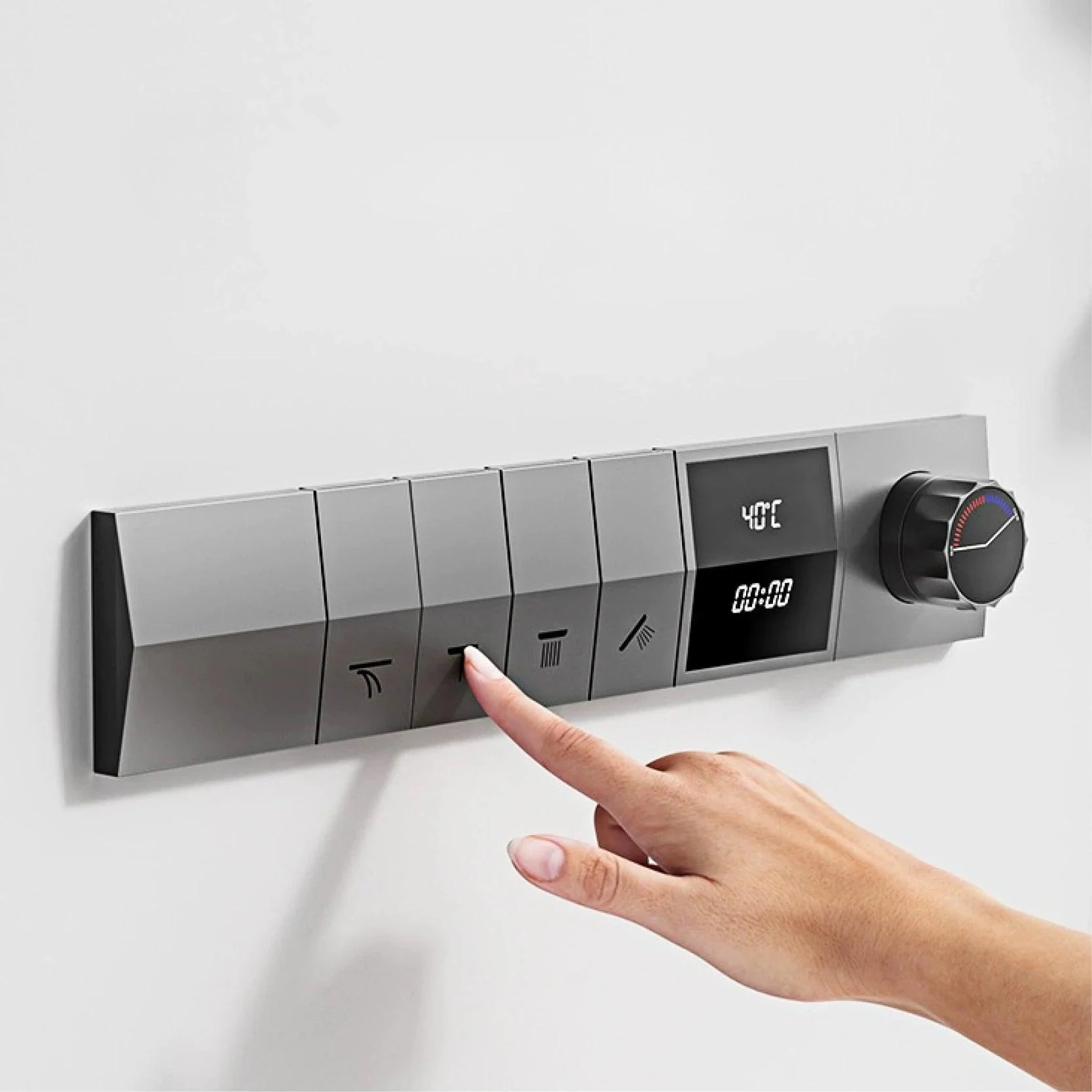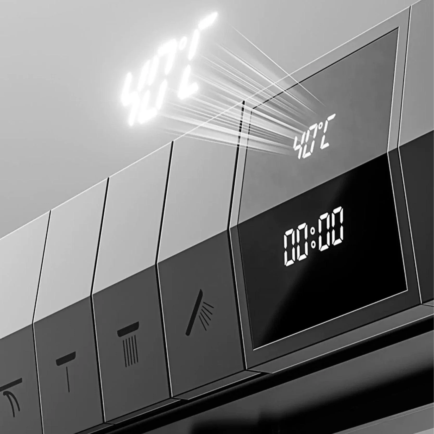Upgrade your bathroom with bathlova LED Digital Display Wall Mounted Dual Control 4-function Tap. Experience ultimate convenience and style with precise control over water flow and temperature. Transform your space with this modern, multifunctional fixture. Elevate your daily routine.