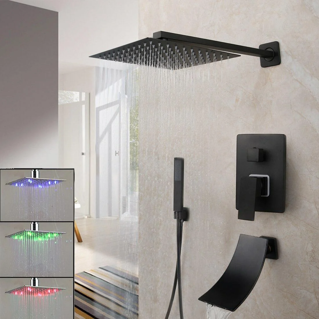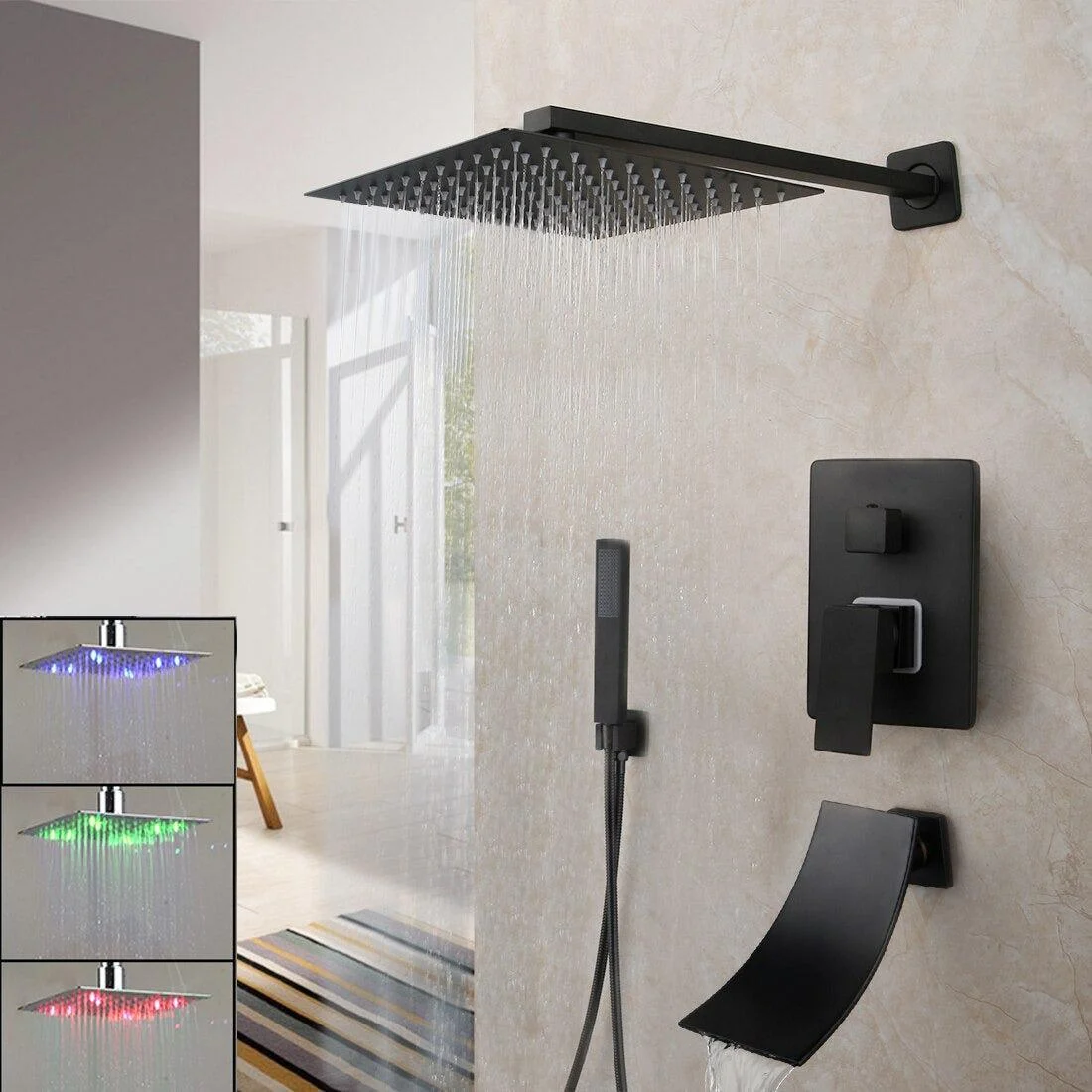 1*Rainfall Tub LED Bathtub Rain Square Shower Head Shower Tap Set