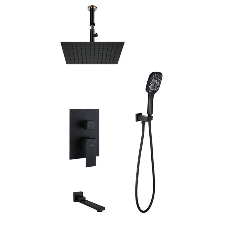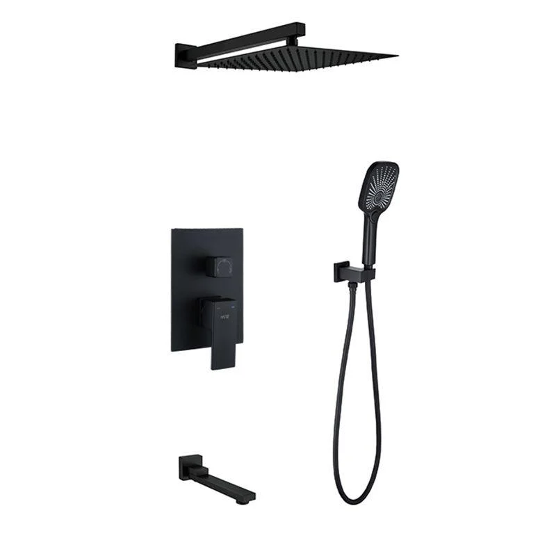 Modern Shower Set Brass Square Temperature Control Shower System -Bathlova