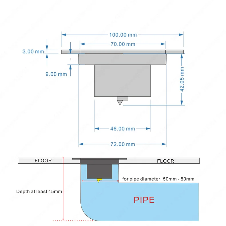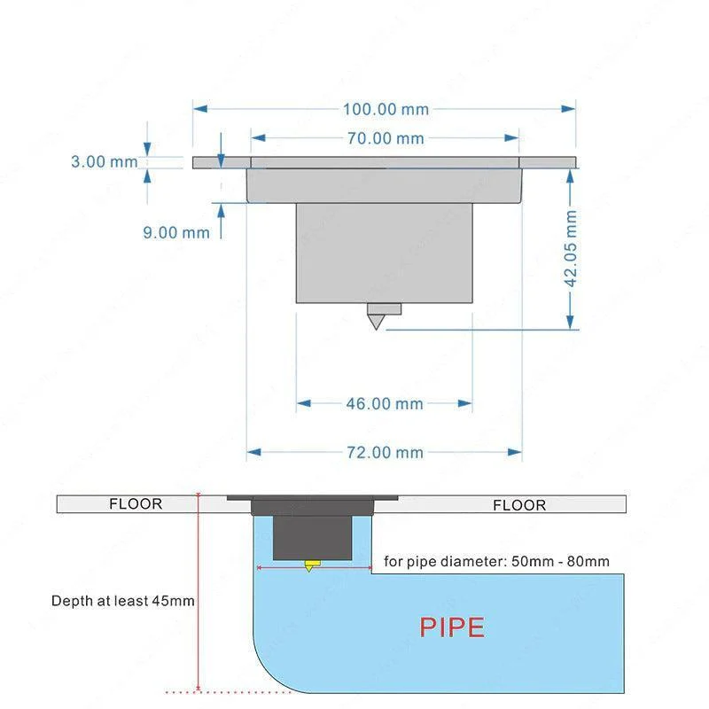 This floor drain features a convenient pop-up design that allows you to easily open and close the drain with a simple push. This feature not only adds to the ease of use, but also helps prevent odors and bacteria buildup by sealing off the drain when not in use.