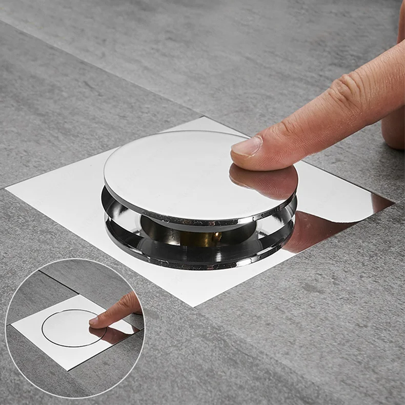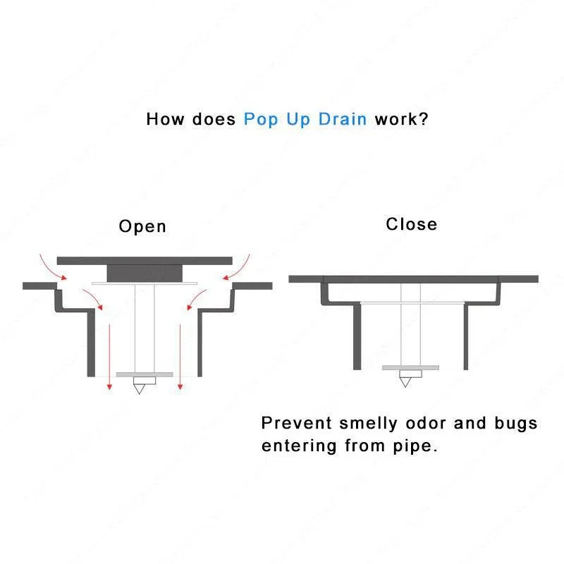 It works in a variety of places, including shower floors, bathroom floors, kitchens, laundry and utility sinks, and more!Pop-Up 4" Brass Floor Drain Bath Drains Push Down DrainsEASY TO INSTALL