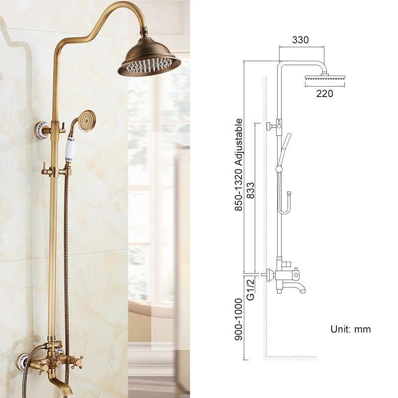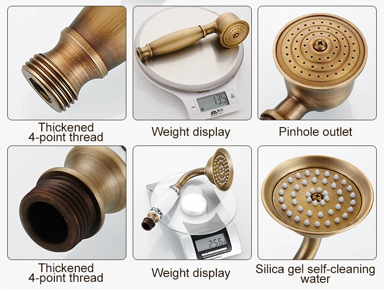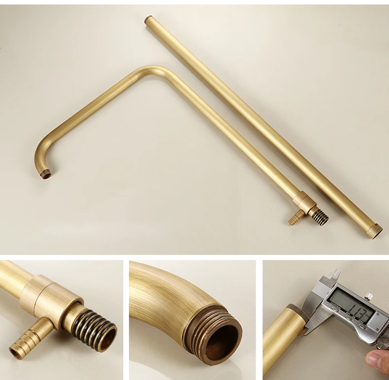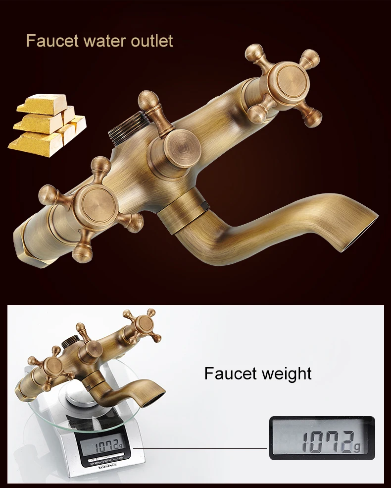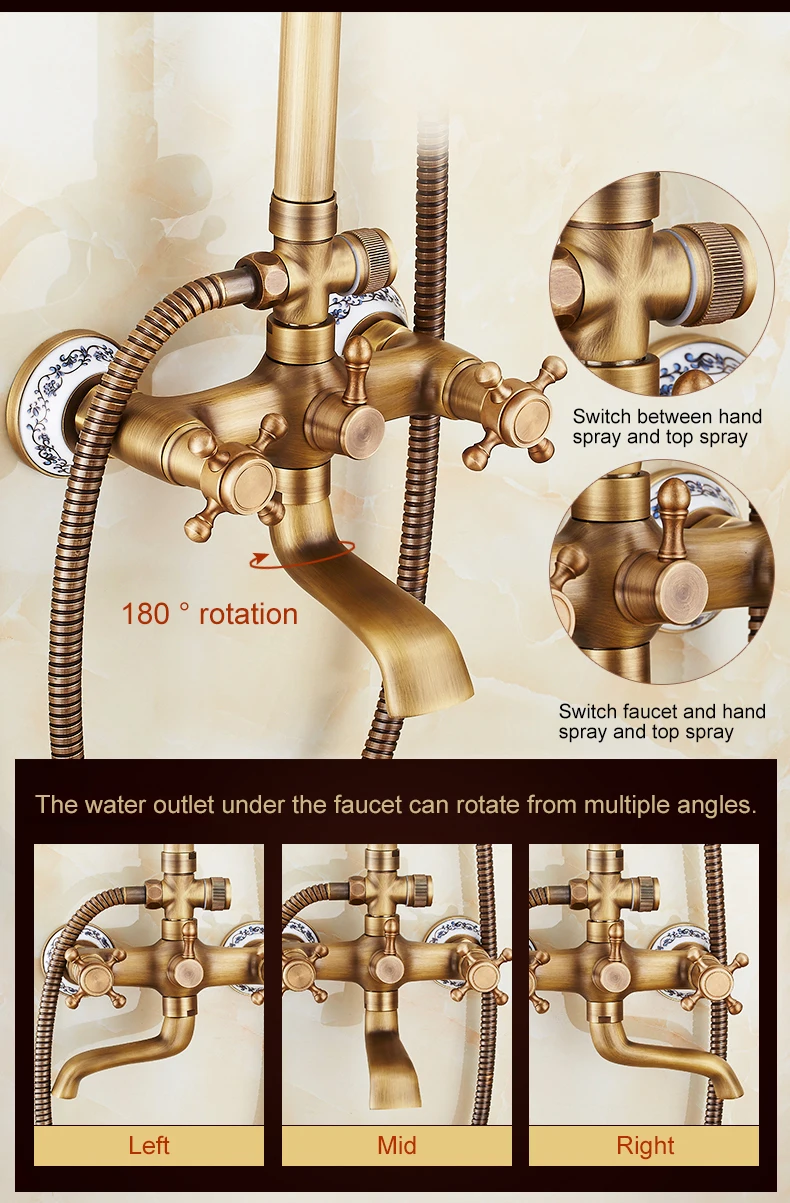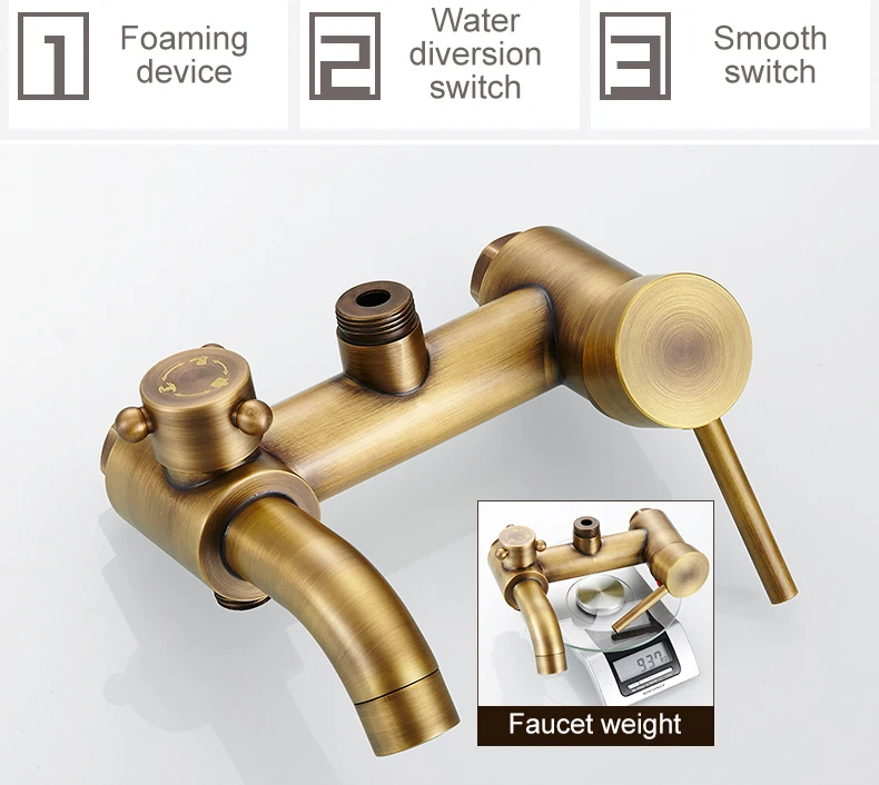 Other features include a hand brass shower mixer for the highest flow rate and water pressure, solid brass construction for durability, Chrome plated handles and premium ceramic disc valves, and an anti-scald spout.