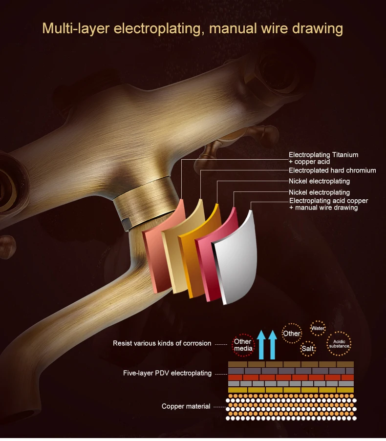 Featuring durable brass construction, solid brass finish, and pressure compensating mixing valve, this metal-plated Tap is built to stand the test of time.