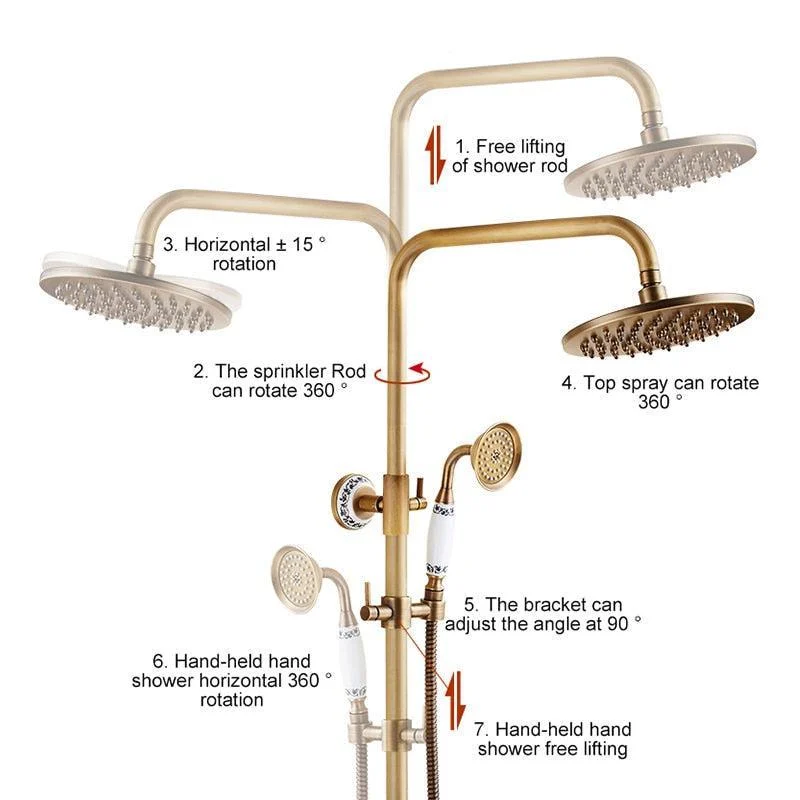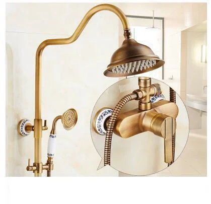 A harmonious combination of modern design and vintage flair, this rectangular shower set brims with artistry. The bathlova Rain Shower Taps Set with Hand Brass Wall Mounted Shower Mixer is inspired by the natural beauty of water when it falls from the sky.