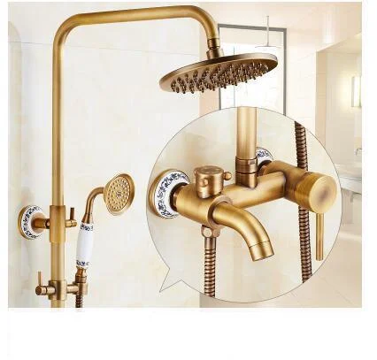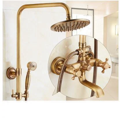 1*Rain Shower Taps Set with Hand Brass Wall Mounted Shower Mixer